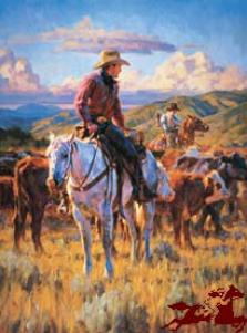 | Jason’s love for western life and art began in his childhood. He grew up on a small farm in Southern Idaho spending his time either riding, training or drawing horses. His western roots and passion for art influenced his decision to pursue art as a profession. He attended Utah State University where he majored in Art Education and Illustration and completed his Bachelors of Fine Art degree in 1995. Although Jason taught for a year and enjoyed it, his desire to devote more time to painting persisted. He decided to pursue art full time while working on a masterâ €™s degree. By the time he had earned his Masters of Fine Art degree in 1998, his art career was in full bloom. His work, which can be seen in fine galleries and art shows across the West, has received considerable recognition in national art shows and publications. Jason lives in northern Utah with his wife and three children. |